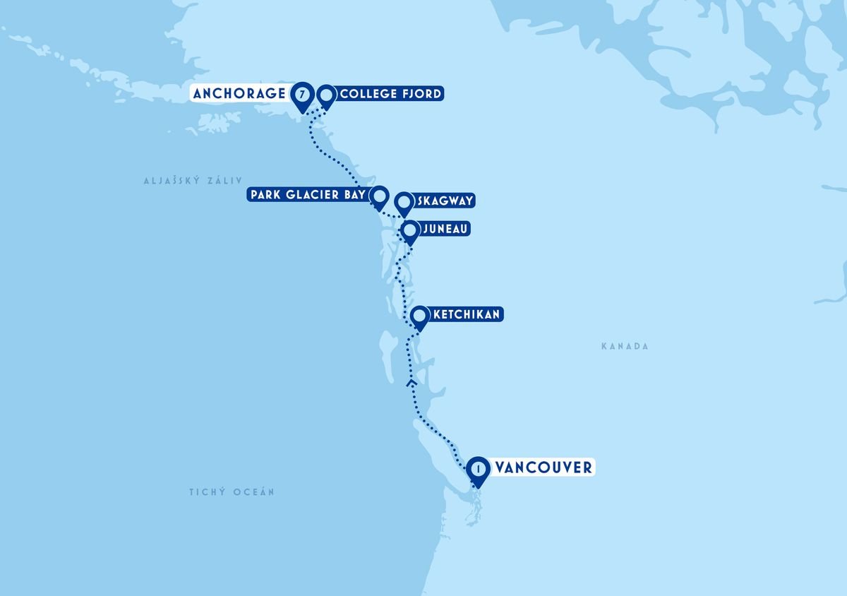 Posledná raňajky na lodi Grand Princess a vylodenie. Anchorage je najväčšie mesto na Aljaške a ekonomické centrum štátu, hoci nie je hlavným mestom (tým je Juneau). Mesto je obklopené nádhernou prírodou, vrátane pohoria Chugach Mountains. Určite stojí za zmienku Alaska Native Heritage Center, kultúrne centrum predstavujúce tradície a spôsob života pôvodných obyvateľov Aljašky. Anchorage spája mestský život s divokou aljašskou krajinou. V jeho okolí môžete vidieť množstvo zvierat, napríklad medvede, losy a dokonca aj veľryby. Kúsok za mestom sa nachádza prírodný park Chugach State Park, ideálny na turistiku alebo lyžovanie. Program zájazdu je len informatívny a ponúka tipy, čo navštíviť v jednotlivých destináciách. Nejedná sa však o prehliadku s sprievodcom. Fakultatívne výlety je možné zakúpiť priamo na lodi, avšak nie je k dispozícii česky hovoriaci sprievodca. Zmena programu vyhradená.