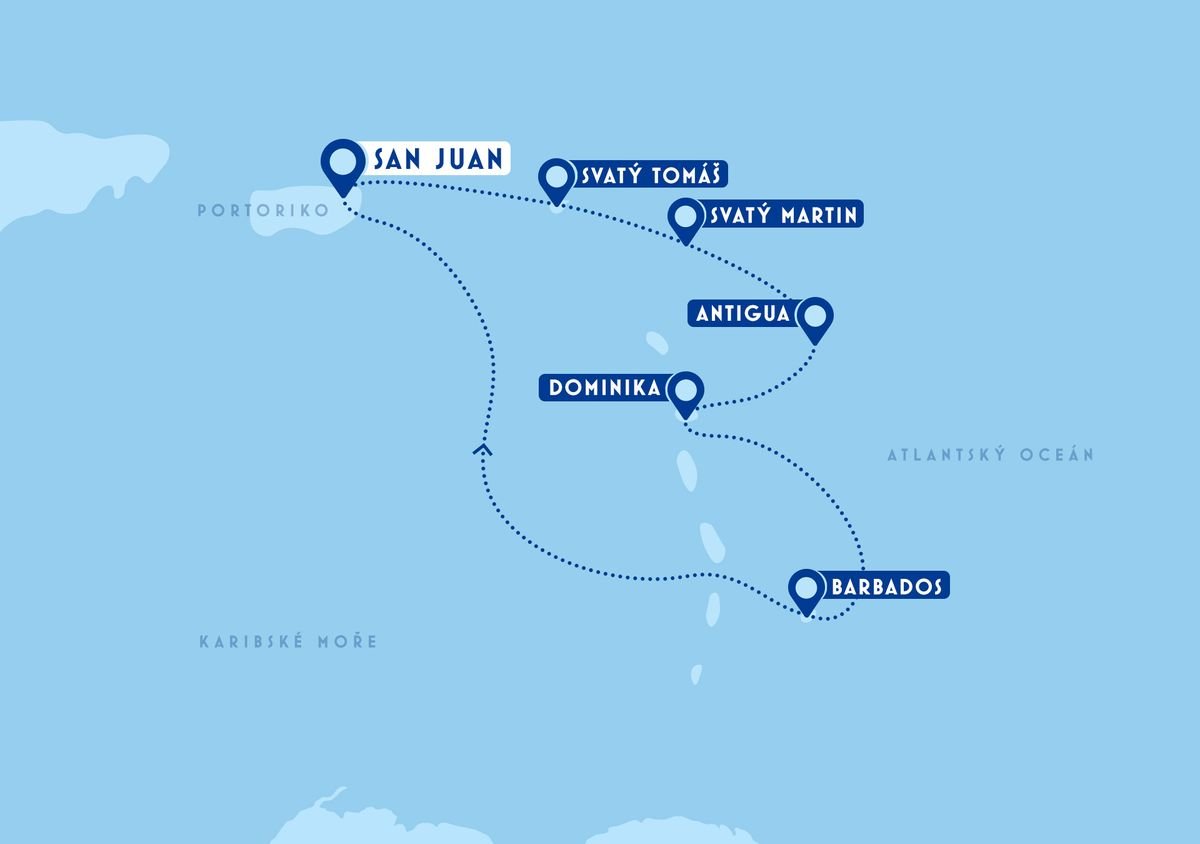 Svätý Martin je ostrov, ktorý očarí svojou jedinečnou dvojitou identitou. Podľa legendy ho kedysi rozdelili Francúz a Holanďan na základe neformálnej dohody, a dnes tu nájdete plynulý prechod medzi francúzskou eleganciou a holandskou energiou. Prechod medzi oboma časťami spoznáte len podľa uvítacieho nápisu, čo odráža pohodový životný štýl tohto karibského klenotu. Na holandskej strane môžete začať v hlavnom meste Philipsburg, ktoré je známe svojou živou Front Street plnou obchodov, reštaurácií a duty-free butikmi. Pre milovníkov dobrodružstva ponúka Ekopark Rockland Estate vzrušujúce zážitky vrátane ziplinu a naučných chodníkov. Zaujímavým zážitkom je aj návšteva Topperova Rhum, kde môžete ochutnať miestny rum a dozvedieť sa viac o jeho výrobe. Francúzska časť ostrova, Svätý Martin, vás privíta svojím šarmom v mestečku Marigot. Užijete si pokojné prechádzky trhom s miestnymi delikatesami a európskym šarmom. Môžete sa tiež vydať na výlet na susedný St. Barths, luxusný ostrov plný bielych pláží a štýlových butikoch. Pre dobrodruhov aj milovníkov vody je tu možnosť zúčastniť sa regaty Amerického pohára, kde si vyskúšate, aké je to byť členom posádky. Ďalší nezabudnuteľný zážitok prináša podvodné dobrodružstvo – šnorchlovanie a potápanie v tyrkysových vodách okolo koralových útesov. Či už sa rozhodnete pre relax, zábavu alebo objavovanie, Svätý Martin ponúka niečo pre každého.