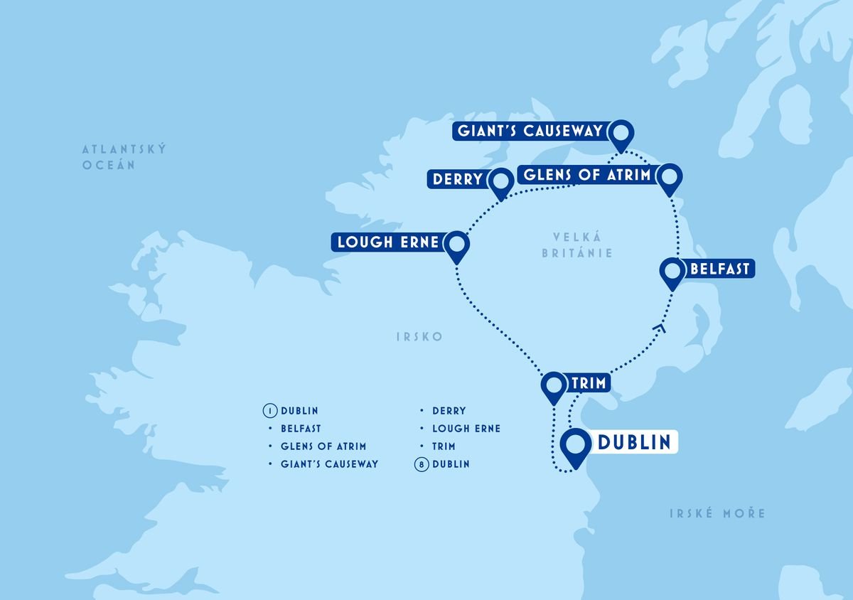 Dublin • Belfast • Bushmill • Giant's Causeway • Derry • Lough Erne • Trim • Dublin
