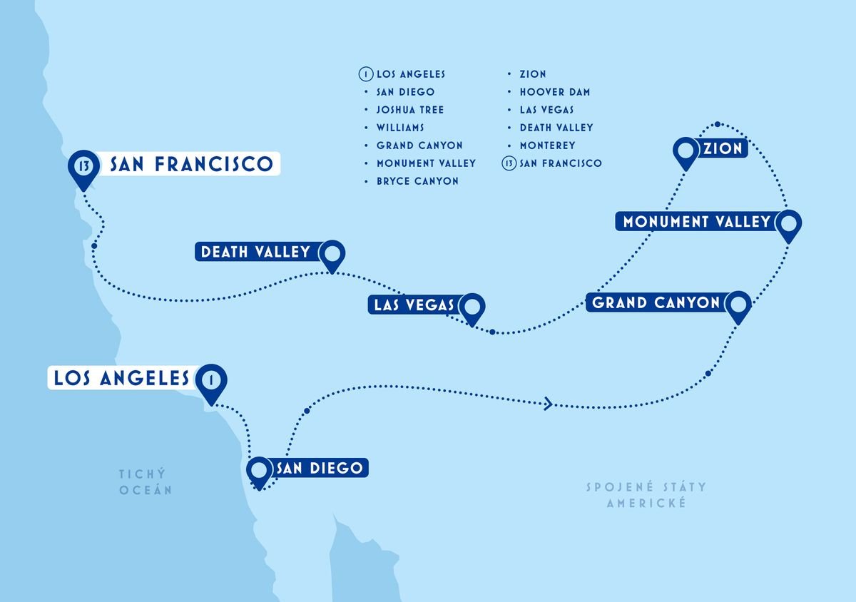 Vysoké hory, dechberoucí krajina rudých skal, úchvatný Yosemite či třpytivá velkoměsta pacifického pobřeží. Rozmanitosť tejto cesty je doslova ohromujúca.